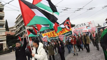 Μαζική ήταν η διαδήλωση για την Παλαιστίνη και στη Θεσσαλονίκη.