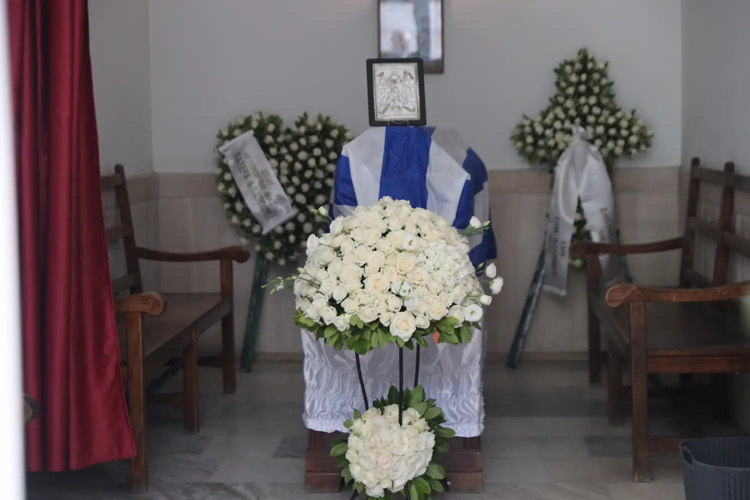 Απαρηγόρητη η σύζυγός του, Βίκυ Βουλάρκη, εμφανίστηκε ντυμένη στα μαύρα και υποβασταζόμενη στον Ιερό Ναό των Αγίων Θεοδώρων. Δίπλα της ήταν τα δύο της παιδιά, Λάμπρος και Παυλίνα, που με δάκρυα στα μάτια αποχαιρέτησαν τον λατρεμένο τους πατέρα, καθώς και ο μικρός εγγονός του εκλιπόντα, Στέφανος.