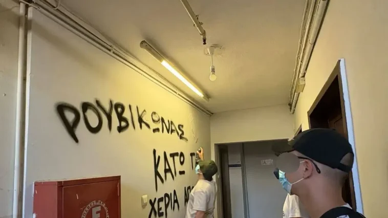 Επίθεση με συνθήματα στους τοίχους και τρικάκια πραγματοποίησε ο «Ρουβίκωνας» στην είσοδο του γραφείου του υφυπουργού Υγείας και βουλευτή Β΄ Θεσσαλονίκης Δημήτρη Βαρτζόπουλου.
