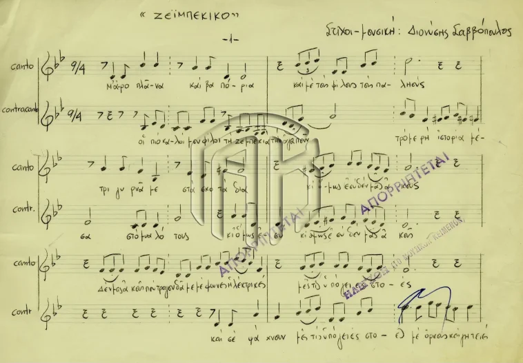 Τα τεκμήρια της ανάρτησης αφορούν τη λογοκρισία του εμβληματικού τραγουδιού του Σαββόπουλου “Ζεϊμπέκικο” από την επιτροπή λογοκρισίας της Γενικής Γραμματείας Τύπου και Πληροφοριών το αρχείο της οποίας βρίσκεται στην Κεντρική Υπηρεσία των ΓΑΚ», ανέφερε στο Facebook η επίσημη σελίδα των Γενικών Αρχείων του Κράτους.
