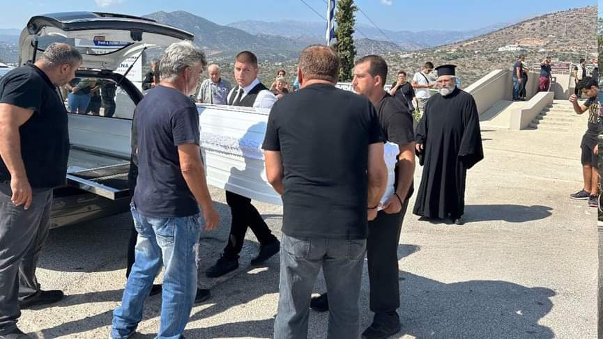 Η σορός του άτυχου 36χρονου έφτασε με λευκό φέρετρο, στις 11 το πρωί στον Ιερό Ναό Ευαγγελιστρίας στον Άγιο Νικόλαο, όπου στις 12 θα ψαλεί η εξόδιος ακολουθία.