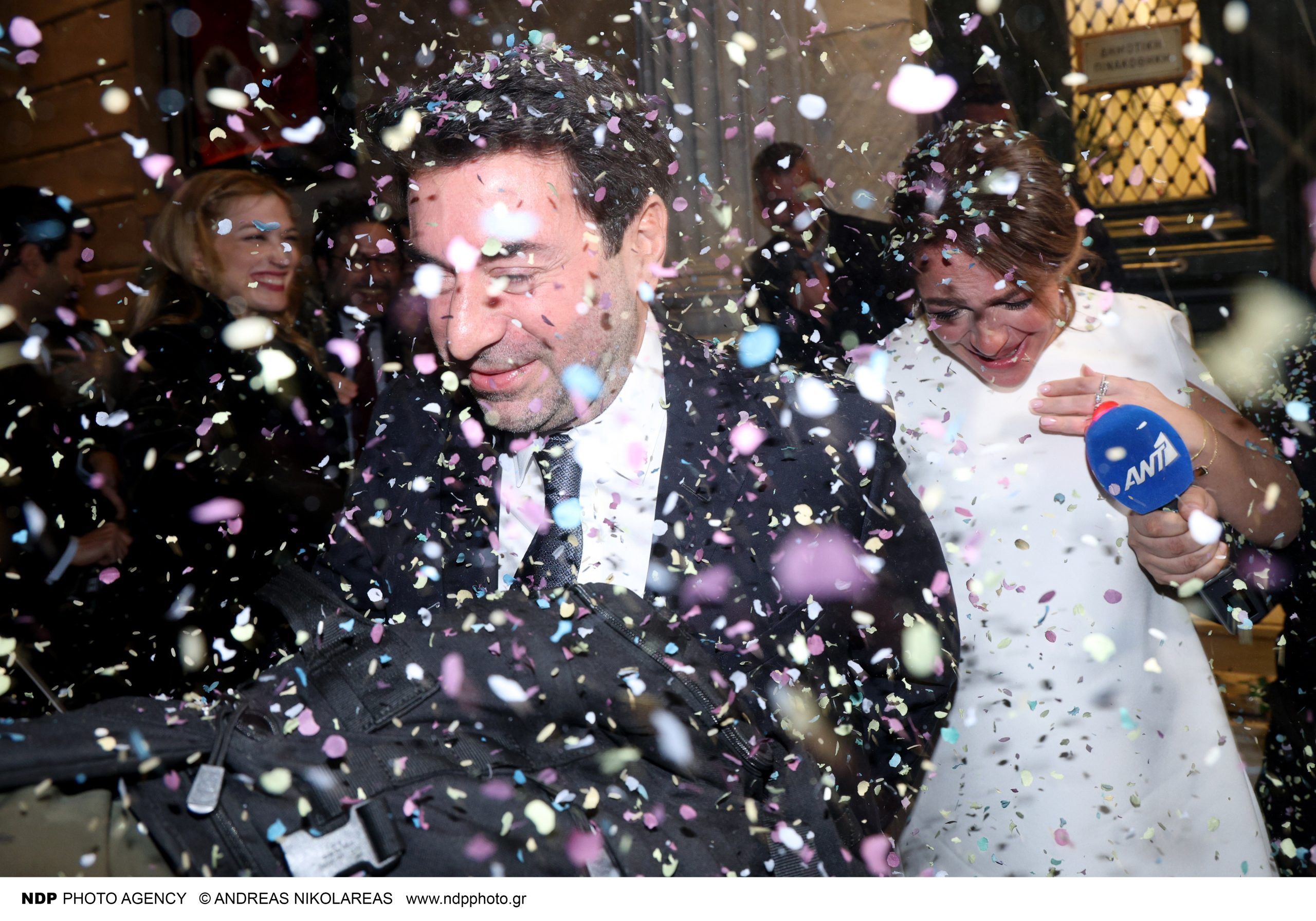 Όπως διακρίνουμε και στις φωτογραφίες από τη Δημοτική Πινακοθήκη του Πειραιά, η εγκυμονούσα βουλευτής της Νέας Δημοκρατίας και ο εκλεκτός της καρδιάς της έμοιαζαν πιο ευτυχισμένοι από ποτέ και βεβαίως δέχθηκαν το γνώριμο έθιμο με το ρύζι κατά την έξοδο από τον χώρο τέλεσης του πολιτικού τους γάμου.
