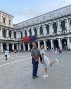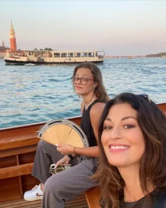 Στη λεζάντα με την οποία συνόδεψε τις φωτο της έγραψε: “The biggest smile in my face in Venice. Holiday with Gaia meeting my friends Francesco and Artico and all the gang. So much fun ! Το μεγαλύτερο χαμόγελο έχω πάντα όταν είμαι στην Βενετία. Διακοπές με την Γαία συναντώντας την αγαπημένη παρέα και όλους τους φίλους που μου λείπουν όταν είμαι Ελλάδα”