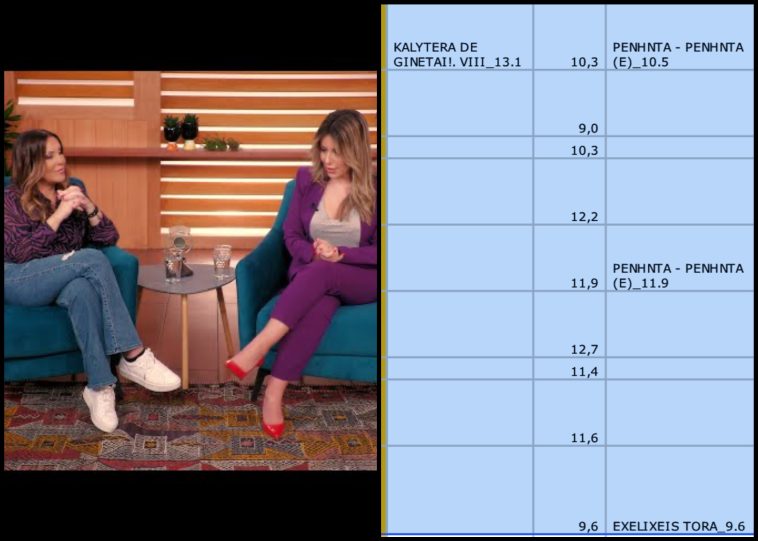 Κι αυτό είχε ώς αποτέλεσμα να είναι στα “κόκκινα” απο το πρώτο λεπτό μέχρι το τελευταίο και η Γιάμαλη να πέσει κάτω απο το 10% και να προσγειωθεί στα μονοψήφια. Κάτι που δείχνει αυτό που σας έχουμε γράψει εδώ και μήνες. Πώς η εκπομπή της Νατάσας δεν έχει ταυτότητα.