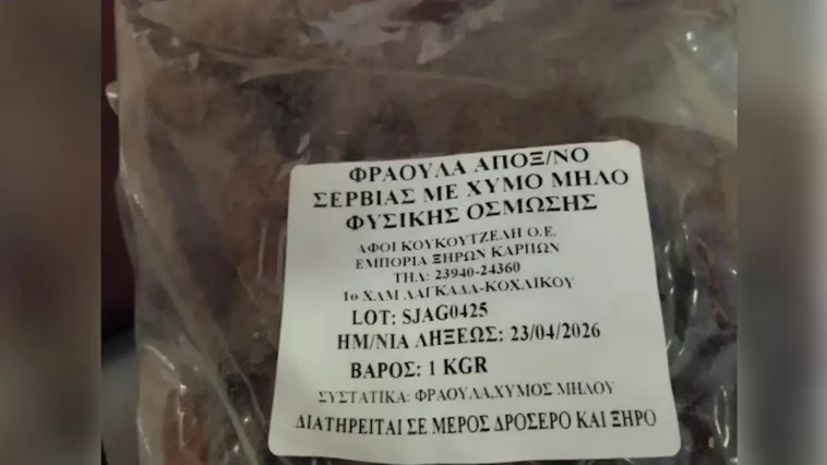 Πρόκειται για προϊόν προέλευσης Σερβίας σε πλαστική κλειστή συσκευασία 1Kg, με αριθμό παρτίδας SJAG0425 και ανάλωση κατά προτίμηση πριν από: 23/04/2026 που διατίθεται από την επιχείρηση «ΑΦΟΙ ΚΟΥΚΟΥΤΖΕΛΗ ΟΕ» με έδρα στον 1ο χλμ Λαγκαδά – Κολχικού.