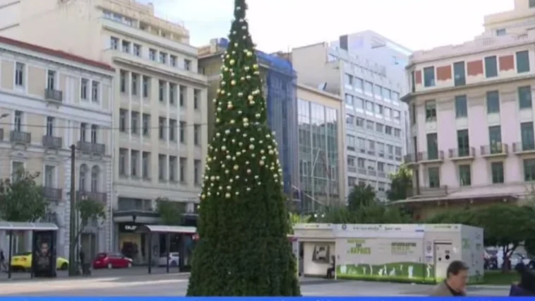 Γυμνό από τη μέση και κάτω άφησαν επιτήδειοι το χριστουγεννιάτικο δέντρο στην πλατεία Κλαυθμώνος, οι οποίοι όπως φαίνεται στη φωτογραφία πήραν όσα στολίδια μπορούσαν να φτάσουν με τα… χέρια.