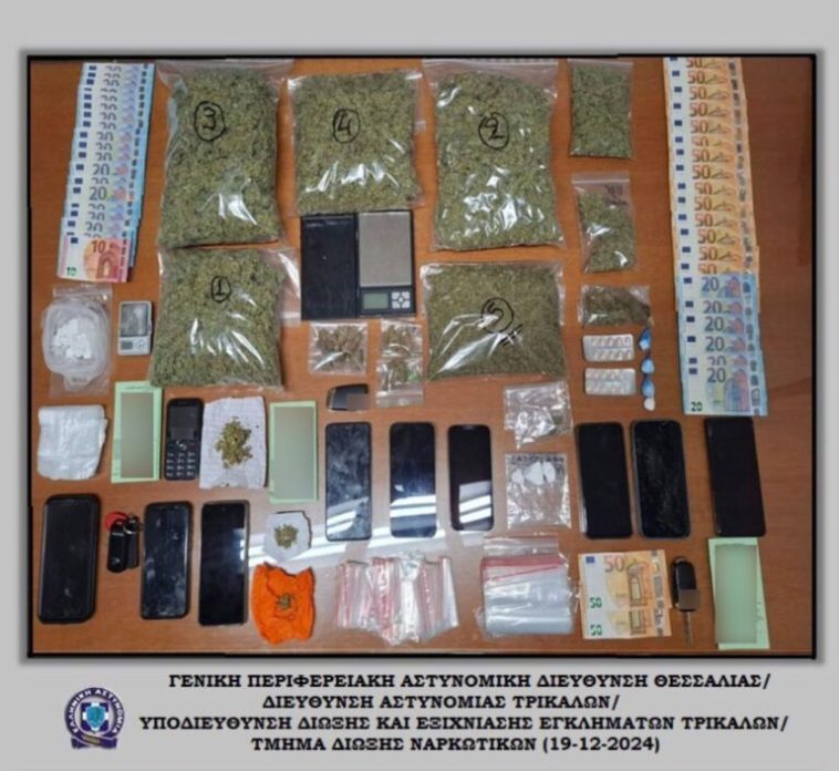 Σε εκτεταμένη αστυνομική επιχείρηση που πραγματοποιήθηκε την (16-12-2024) το βράδυ και συνεχίστηκε προχθές (17-12-2024) στην ευρύτερη περιοχή της πόλης των Τρικάλων, της Καρδίτσας και των Αθηνών, από αστυνομικούς της Υποδιεύθυνσης Δίωξης και Εξιχνίασης Εγκλημάτων Τρικάλων – του Τμήματος Δίωξης Ναρκωτικών, με τη συνδρομή αστυνομικών του Τμήματος Δίωξης και Εξιχνίασης Εγκλημάτων και της Ομάδας Πρόληψης & Καταστολής Εγκληματικότητας (Ο.Π.Κ.Ε.) – καθώς και της Υποδιεύθυνσης Δίωξης Ναρκωτικών της Διεύθυνσης Αντιμετώπισης Οργανωμένου Εγκλήματος, συνελήφθησαν συνολικά -10- άτομα, ως μέλη της οργάνωσης και συγκεκριμένα -8- ημεδαποί άνδρες – από τους οποίους ένας αστυνομικός, ένα στέλεχος της Πολεμικής αεροπορίας και ένας υπηρετών τη στρατιωτική του θητεία -, -1- ημεδαπή γυναίκα και -1- αλλοδαπός άνδρας, σε βάρος των οποίων σχηματίστηκε δικογραφία για εγκληματική οργάνωση και παράβαση της νομοθεσίας περί ναρκωτικών.