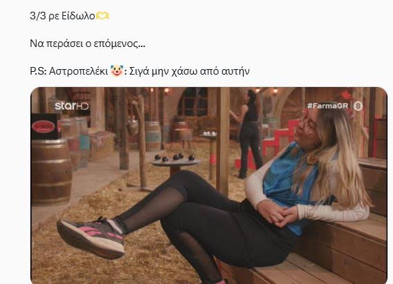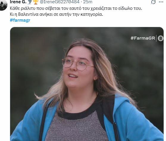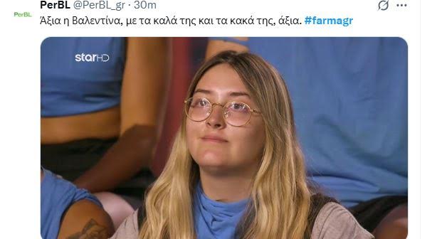 - Οι λίγοι τηλεθεατές που βλέπουν “Φάρμα” ψηφίζουν Βαλεντίνα, την 22χρονη που κάνει ότι της έρθει χωρίς να ενδιαφέρεται για την εικόνα της και λατρεύει την ξάπλα και τον ύπνο!