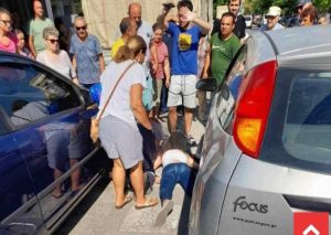 Σοβαρό τροχαίο στην οδό Αγίας Σοφίας κοντά στην Πλατεία όταν διερχόμενο ΙΧ παρέσυρε 21χρονη κοπέλα και την εκτίναξε στον αέρα.