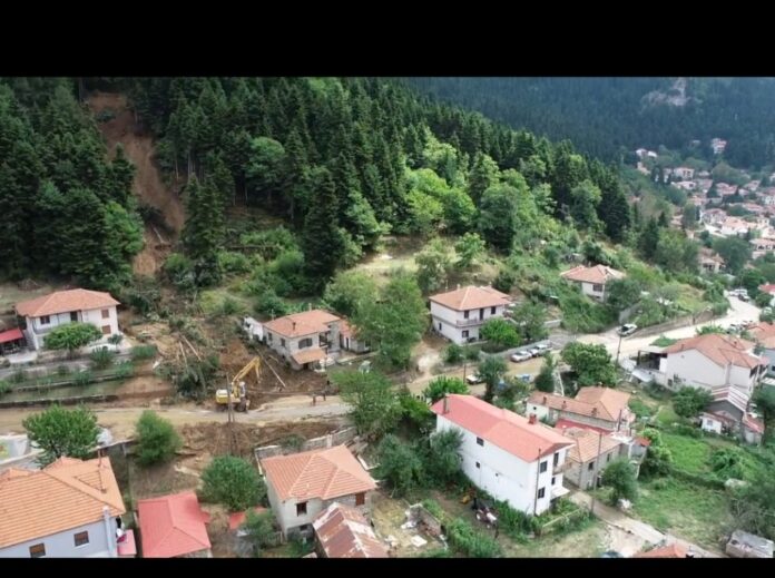 - Οι κατολισθήσεις κατάπιαν μέρος του χωριού, ενώ ορμητικός χείμαρρος διέλυσε το φράγμα μεταξύ Ελάτης και Καλογήρων.