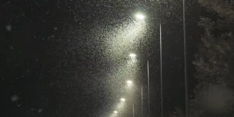 Ένα ανατριχιαστικό φαινόμενο κατέγραψε η κάμερα του UPStories στην Λάρισα το βράδυ της Παρασκευής, όταν ένα σμήνος από χιλιάδες έντομα σκέπασε την ευρύτερη περιοχή. Σε οδοιπορικό που πραγματοποίησε το Up Stories κατέγραψε το απόκοσμο φαινόμενο λίγο έξω από την Λάρισα, στην περιοχή Μάνδρα. Τα εφημερόπτερα, τα οποία έχουν κατακλύσει την περιοχή, είναι μια αρχέγονη τάξη εντόμων, που έως σήμερα διατηρούν μερικά χαρακτηριστικά που στα άλλα έντομα εξαφανίστηκαν κατά την πορεία της εξέλιξης. Η διάρκεια της ζωής των ενήλικων είναι πάντως σε κάθε περίπτωση πολύ περιορισμένη. Ανάλογα με το είδος, ζουν μεταξύ μερικών ωρών και μερικών ημερών.