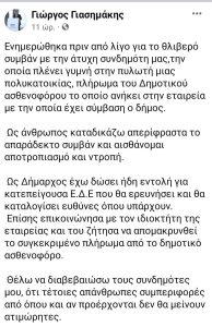 - Σε ανάρτησή του στο Facebook ο δήμαρχος Γιάννης Γιασημάκης αναφέρει: