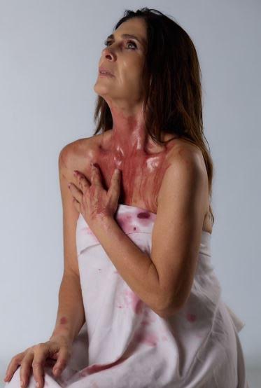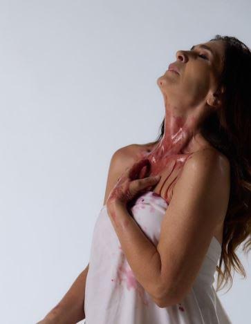 Χθες πραγματοποίησε και την ανάλογη φωτογράφιση με την λειτουργό της Τέχνης να ποζάρει γεμάτη αίματα στο σώμα.