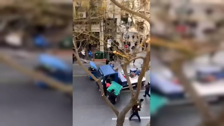 η ώρα της επιθετικής οδήγησης του αστυνομικού με γερανο της αστυνομίας μέσα από πλήθος κόσμου στην Ακαδημίας #antireport pic.twitter.com/88p8qmA6oU