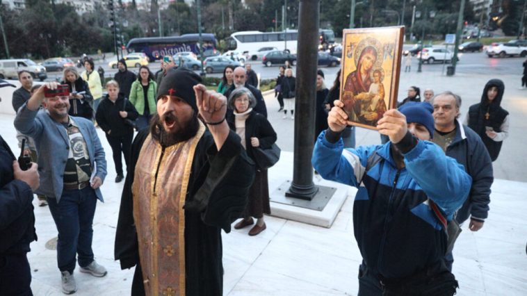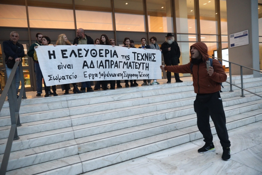 Μεγάλη ένταση προκλήθηκε έξω από την Πινακοθήκη, όταν ομάδα ορθόδοξων προπηλάκισε μέλη σωματείων από τον χώρο του πολιτισμού που διαδήλωναν ειρηνικά υπέρ της ελευθερίας της έκφρασης στην Τέχνη.