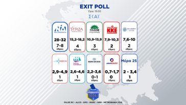 Ώρα exit poll. Οι κάλπες για τις εκλογές της 25ης Ιουνίου έκλεισαν ακριβώς στις 19:00 και πλέον τα βλέμματα είναι στραμμένα στην πρώτη αποτύπωση της ψήφου των Ελλήνων από τις εταιρίες δημοσκοπήσεων ALCO, MARC, METRON ANALYSIS, MRB HELLAS A.E., Pulse και GPO.