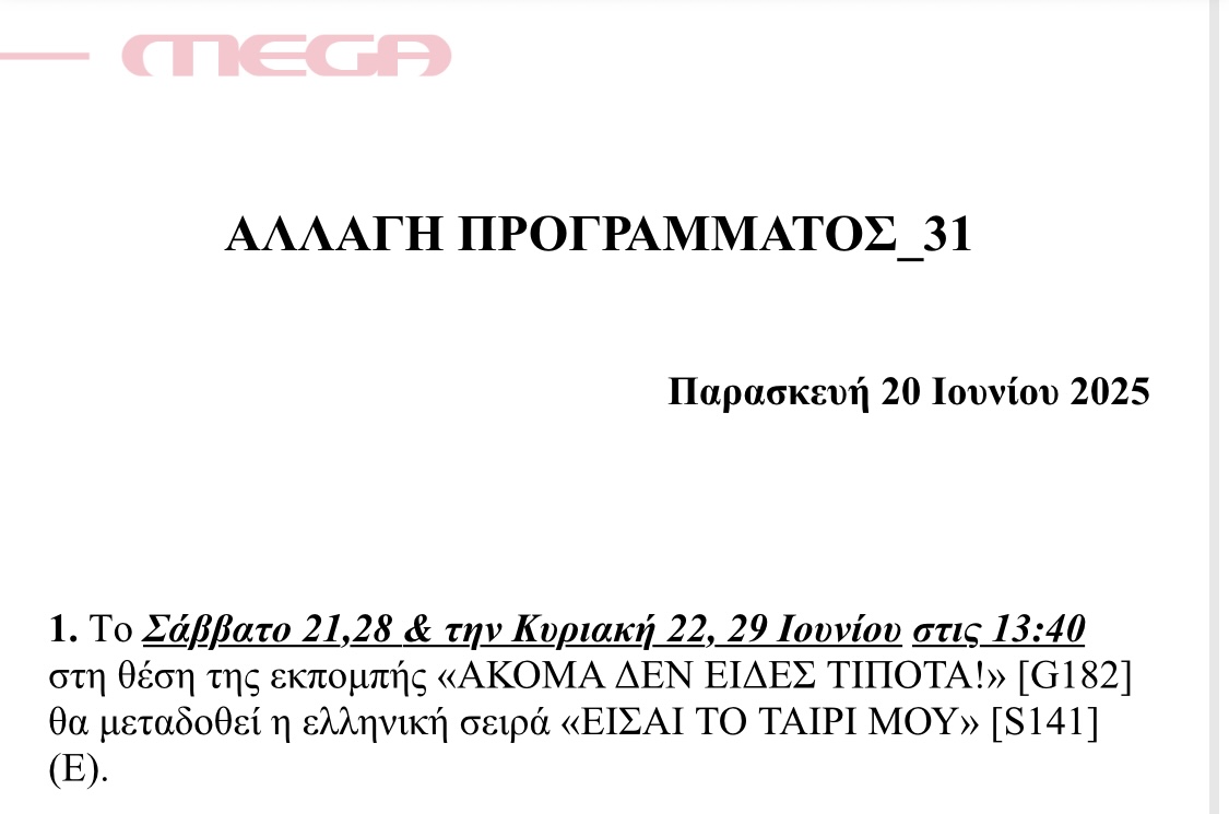 Μάλιστα το κανάλι έστειλε και αλλαγή στο πρόγραμμα επιβεβαιώνοντας το ρεπορτάζ.