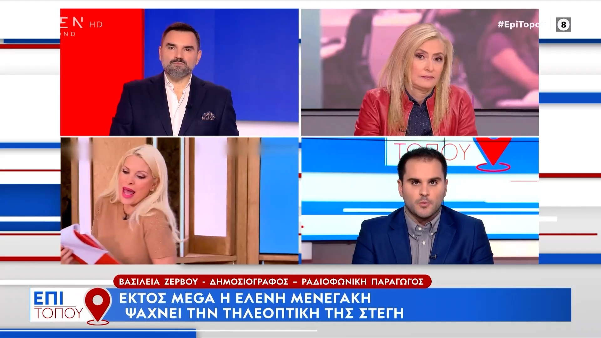 Δεν βγαίνει λευκός καπνός στο ζήτημα της Ελένης Μενεγάκη σε σχέση με την παραμονή της ή όχι στο Mega. Κανένα ραντεβοού δεν έχει γίνει, αλλά ούτε και πρόσκληση για συνάντηση, κάτι που δείνει ότι μάλλον δεν θα υπάρχει και συνέχεια.