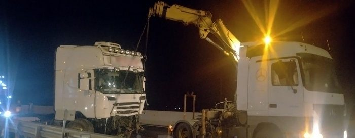 Τροχαίο ατύχημα σημειώθηκε το πρωί του Σαββάτου στο δρόμο Λάρισας – Φαρσάλων, όταν η νταλίκα που οδηγούσε μια γυναίκα εξετράπη, για άγνωστους μέχρι στιγμής λόγους, της πορείας της.