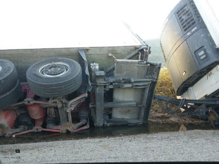 Εκτροπή νταλίκας σημειώθηκε το μεσημέρι της Τετάρτης 11/1 στον Μαραθιά Δωρίδος.
