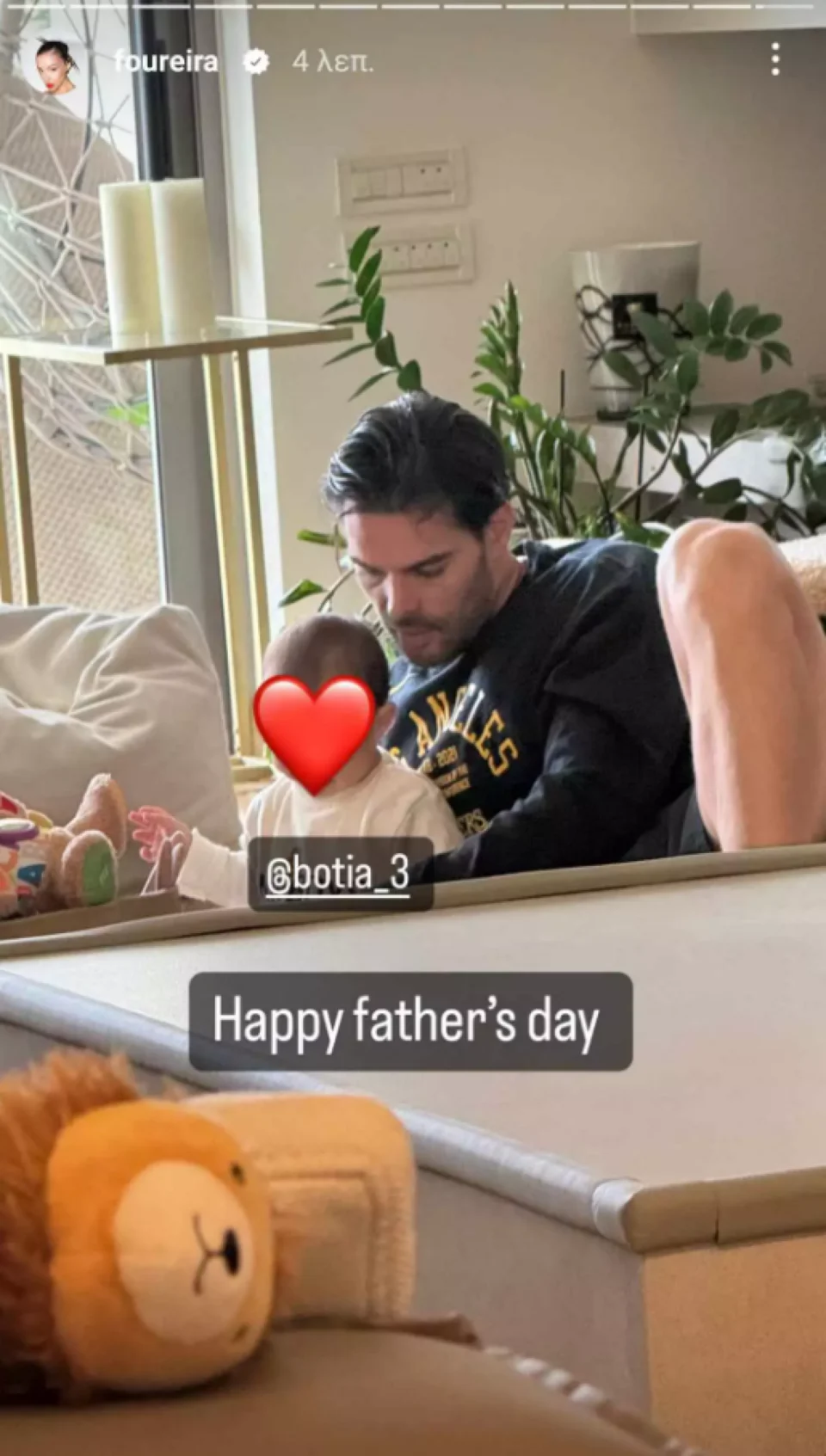 Η Ελένη Φουρέιρα με ανάρτηση στον λογαριασμό της στο Instagam, τίμησε τη Γιορτή του Πατέρα Η τραγουδίστρια ανέβασε ένα στιγμιότυπο του συντρόφου της, Αλμπέρτο Μποτία, στο οποίο φαίνεται να παίζει μαζί με τον γιο τους, Ερμή.
