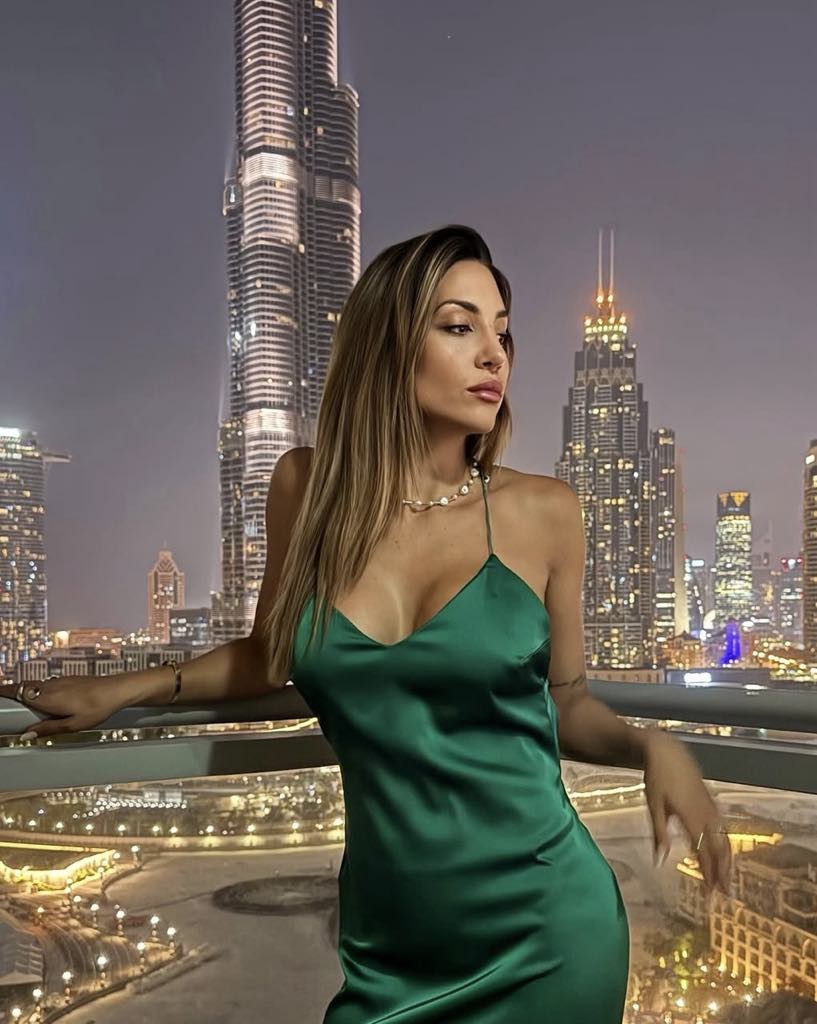Η Φελίσια Τσαλαπάτη με ένα αποκαλυπτικό φόρεμα, ίσα που κρύβει τα οπίσθια καθώς η πλάτη είναι πολύ ανοιχτή, ποζάρει στο Ντουμπάι το βράδυ μετά το ποτό της.