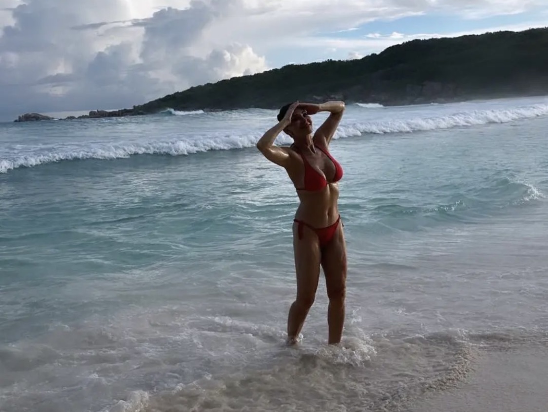 Ξεκίνησε τις βουτιές μέσα στο Μάρτιο. Και μπορεί να μην θέλει να μας αποκαλύψει την τοποθεσία και σε ποια …νερά βρέχει το κορμί της, μας δείχνει όμως πως το μικροσκοπικό κόκκινο μαγιό της υποφέρει πάνω στα “όπλα” της.