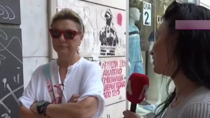 Η Ελπίδα Νίνου μόνο είπε την καλημέρα της και στη συνέχεια στάθηκε σε ένα σημείο, προφανώς ενοχλημένη που την ακολουθούσε η δημοσιογράφος.