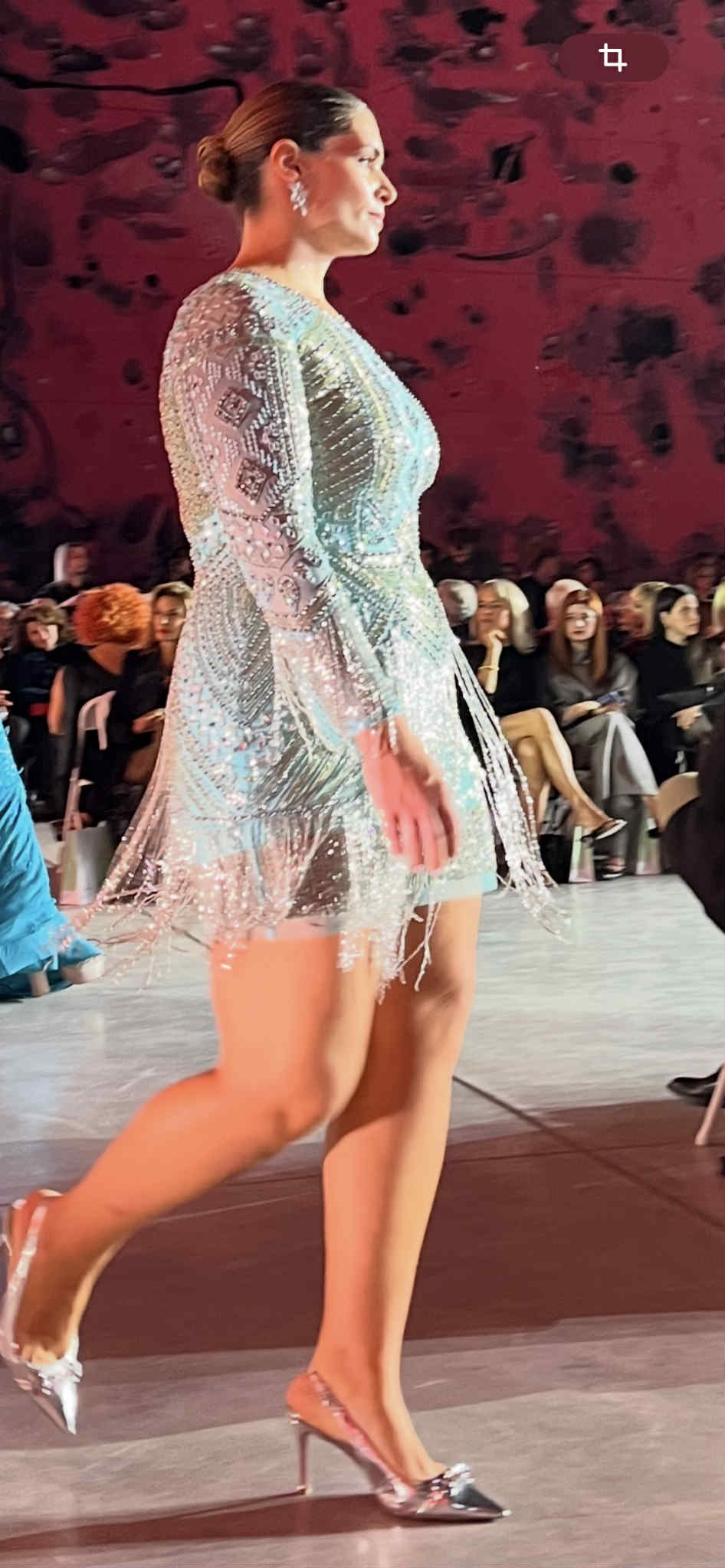 - Την ώρα που παρέλαυναν οι ψηλόλιγνες κοπέλες με τα εντυπωσιακά φορέματα, εμφανίστηκε ξαφνικά μια κοπέλα με λίγα παραπάνω κιλά, παρουσιάζοντας μια υπέροχη δημιουργία.
