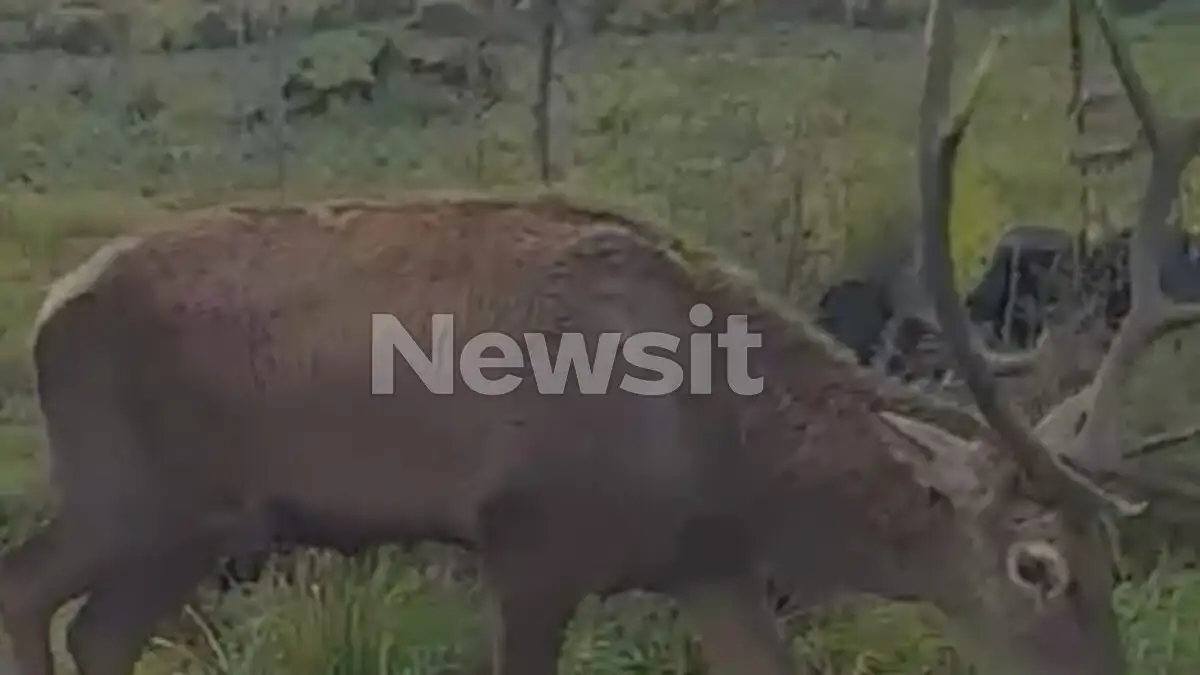 Το περήφανο ελάφι απαθανατίστηκε από κάμερα να περιδιαβαίνει σε δρόμους και χωράφια, βρίσκοντας την ευκαιρία να τραφεί με φρέσκο γρασίδι.