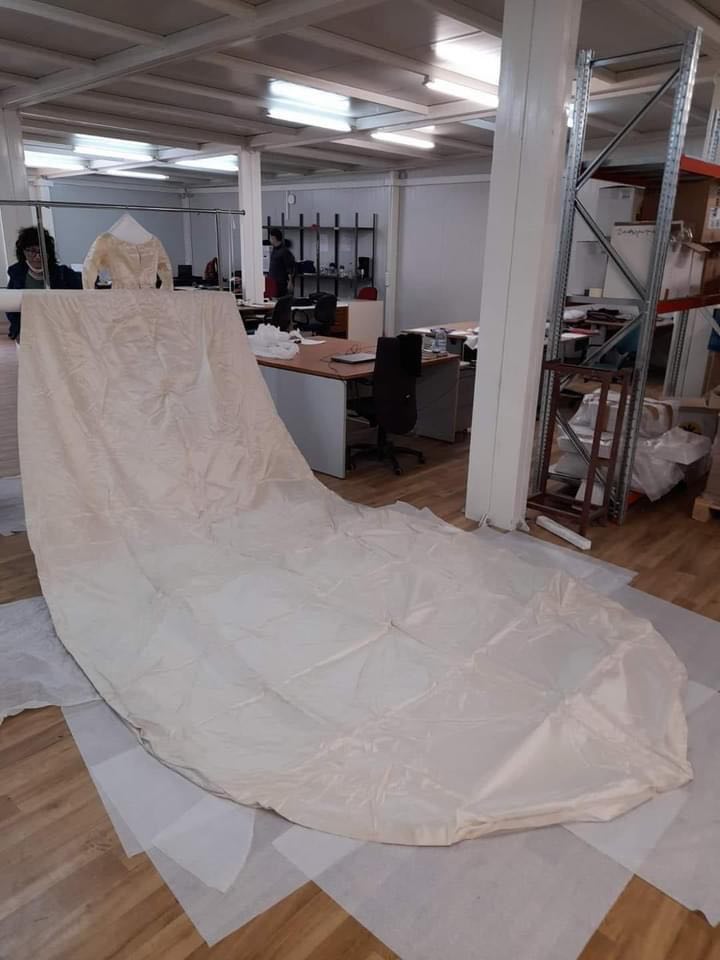 Ιδού το νυφικό της Βασίλισσας Άννας-Μαρίας που βρίσκεται στο Τατόι και πριν λίγες ημέρες αποκαλύφθηκε μεταξύ των προσωπικών αντικειμένων της ελληνικής βασιλικής οικογένειας που βρίσκονται εκεί. Σύντομα θα εκτίθενται και αυτό στο Μουσείο, Ανάκτορο του Τατοΐου.