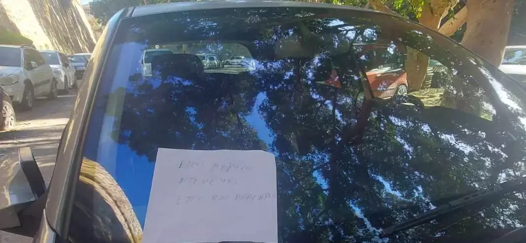 Όταν επέστρεψε να πάρει το αυτοκίνητο που είχε παρκάρει παράνομα στο Ηράκλειο, βρήκε αυτό το σημείωμα των έξι λέξεων. Οι εικόνες άρχισαν να ταξιδεύουν στο διαδίκτυο και το παράνομο παρκάρισμα έγινε viral… Ήταν ακόμα ένα παράνομο παρκάρισμα στο Ηράκλειο, που όμως τροφοδότησε αντιδράσεις και πολλές συζητήσεις. Αιτία το σημείωμα που άφησε άγνωστος στο όχημα και βρήκε ο οδηγός του, όταν επέστρεψε να το πάρει. Οι θέσεις στάθμευσης είναι λίγες και οι εντάσεις τακτικές στην πόλη. Η τροχαία κάνει ελέγχους και μοιράζει πρόστιμα, αλλά το πρόβλημα όπως φαίνεται είναι αδύνατον να λυθεί. Αδιαμφισβήτητα, η εύρεση θέσης πάρκινγκ στο κέντρο του Ηρακλείου, είναι μια ιδιαίτερα δύσκολη υπόθεση, τις περισσότερες ώρες της ημέρας.