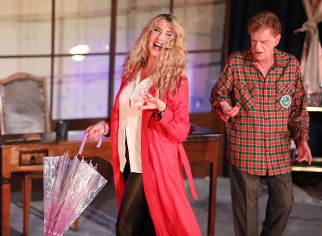 Έτσι επιστρέφει στην θεατρική σκηνή ερμηνεύοντας τον ρόλο της θυελλώδους εκκεντρικής Τζούντιθ με τον Τάκη Παπαματθαίου στον ρόλο του ιδιόρρυθμου μοναδικού Πατρίκ στο έργο «Χορεύοντας με την θύελλα».