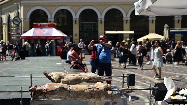 Χαρακτηριστικές οι εικόνες από το κέντρο της Αθήνας και το Μοναστηράκι, με τα καταστήματα εστίασης να έχουν στήσει ψησταριές πάνω στην πλατεία.