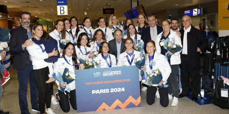 Επέστρεψε το απόγευμα στην Αθήνα από το Αϊντχόφεν η αποστολή της εθνικής ομάδας πόλο γυναικών, έχοντας στις αποσκευές της το χάλκινο μετάλλιο του Ευρωπαϊκού Πρωταθλήματος, αλλά κυρίως την πρόκριση στο Παρίσι και την επιστροφή σε Ολυμπιακούς Αγώνες μετά από 16 χρόνια. Όπως είπε και η Ελενα Ξενάκη, «καταφέραμε και μιλάμε λιγότερο για το μετάλλιο, που από μόνο του συνιστά μία επιτυχία». Την αποστολή υποδέχθηκαν στο αεροδρόμιο “Ελ. Βενιζέλος” ο αναπληρωτής υπουργός Αθλητισμού, Γιάννης Βρούτσης, ο γενικός γραμματέας Αθλητισμού, Γιώργος Μαυρωτάς, ο έφορος κολύβησης και εκπρόσωπος της ΚΟΕ στην ΕΟΕ, Νίκος Ξυλούρης, και τα μέλη του Δ.Σ., Ηλίας Ξιάρχος και Τζώνη Καλημέρης.