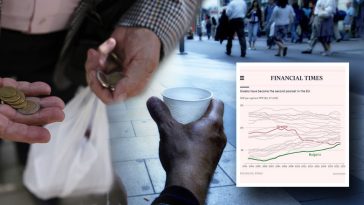 Με τον κίνδυνο της φτώχειας ή του κοινωνικού αποκλεισμού βρίσκεται αντιμέτωπο το 26,3% των Ελλήνων πολιτών, έναντι ποσοστού 22% που είναι ο μέσος όρος στην ΕΕ, σύμφωνα με στοιχεία της Eurostat για το 2022 που δόθηκαν σήμερα στη δημοσιότητα.