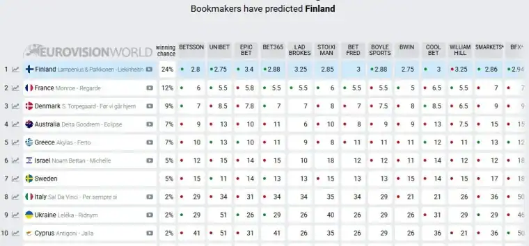 Ανακατατάξεις έφερε η παρουσίαση του φετινού τραγουδιού της Γαλλίας για τη Eurovision 2026, καθώς η κυκλοφορία του κομματιού άλλαξε τα δεδομένα στα στοιχήματα και έριξε τον Έλληνα εκπρόσωπο Akyla στην πέμπτη θέση.