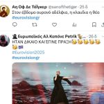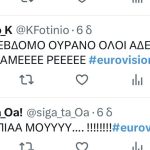 Στο άκουσμα της λέξης Greece το τουίτερ πήρε φωτια! «Στον 7ο ουρανό αδέρφια» «Πάμε τελικό ρεεεεεε!» «Νια ρε θεαραααα 100 εγκεφαλικά πάθαμε μεχρι να το πει!» δείτε μερικά από τα σχόλια τους!