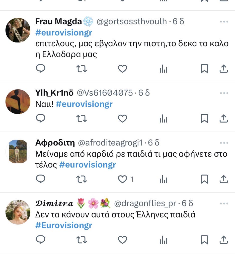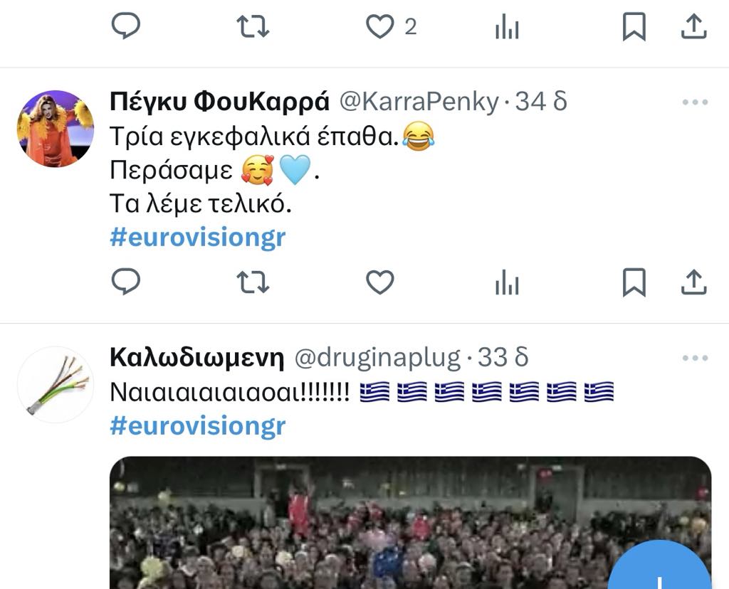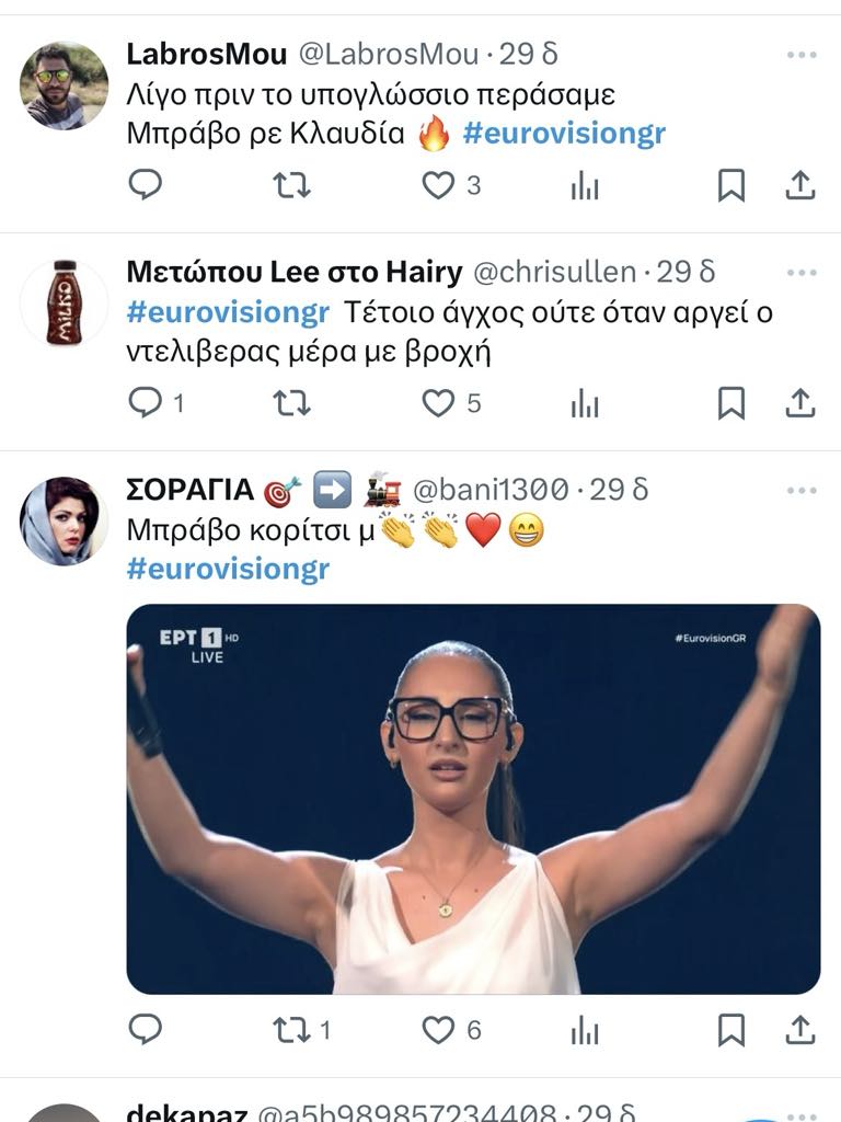 Στο άκουσμα της λέξης Greece το τουίτερ πήρε φωτια! «Στον 7ο ουρανό αδέρφια» «Πάμε τελικό ρεεεεεε!» «Νια ρε θεαραααα 100 εγκεφαλικά πάθαμε μεχρι να το πει!» δείτε μερικά από τα σχόλια τους!