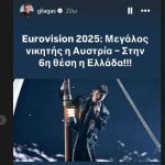 Ανέβασε όμως 6- 7 δημοσιεύσεις που αφορούν στην Κλαυδία. Η νίκη της, η αποθέωση της Ευρώπης, τι είπε η γιαγιά της και άλλα. Ένα μπράβο Ελλάδα όμως, δικό του, δεν έγραψε… Για τέτοιο κόμπλεξ μιλάμε.