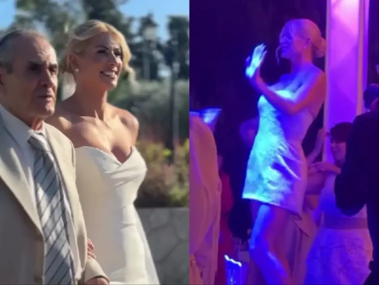 Τη νύφη συνόδευσε στην εκκλησία ο πατέρας της, ενώ οι προσκεκλημένοι του γάμου μοιράστηκαν στα social media φωτογραφίες και βίντεο, στέλνοντας τις ευχές τους στους νεόνυμφους.