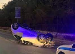 Το ασημί αυτοκίνητο στο οποίο επέβαινε και ένα μωρό, ήταν σταματημένο δεξιά του δρόμου όταν το μαύρο αυτοκίνητο έπεσε πάνω του με αποτέλεσμα να αναποδογυρίσει στον κεντρικό δρόμο.