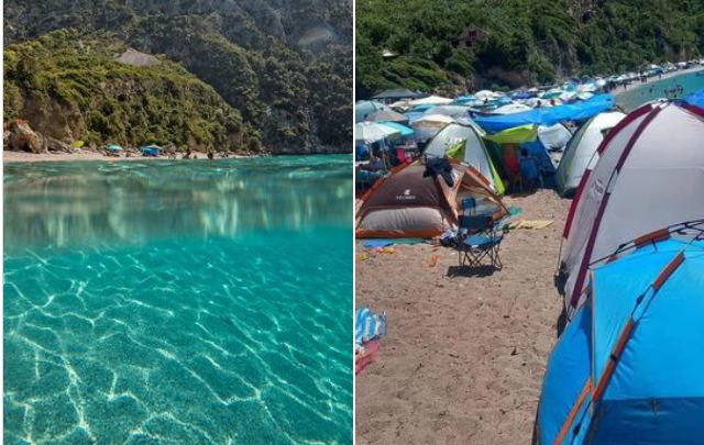 Αντιδρούν οι κάτοικοι του δήμου Κύμης Αλιβερίου, καθώς μία από τις ωραιότερες παραλίες της περιοχής τους αλλά και της Εύβοιας, καλύφθηκε πλήρως από τους δεκάδες κατασκηνωτές που έκαναν ελεύθερο κάμπινγκ.