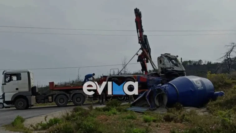 Το τροχαίο συνέβη στο 85ο χλμ της Εθνικής Οδού Χαλκίδας – Αιδηψού, λίγο πριν τη διασταύρωση προς το Δασικό Χωριό, όταν η μπετονιέρα εξετράπη της πορείας της κάτω από άγνωστες μέχρι στιγμής συνθήκες και ανετράπη.
