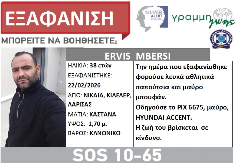 Ένας 38χρονος άνδρας έχει εξαφανιστεί από τις 22 Φεβρουαρίου από τη Νίκαια και έχει εκδοθεί μάλιστα και Silver Alert.