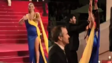Φτιαγμένο από σιφόν, το φόρεμα αποκάλυπτε τα εσώρουχά της, τα οποία ήταν στον ίδιο παστέλ τόνο.