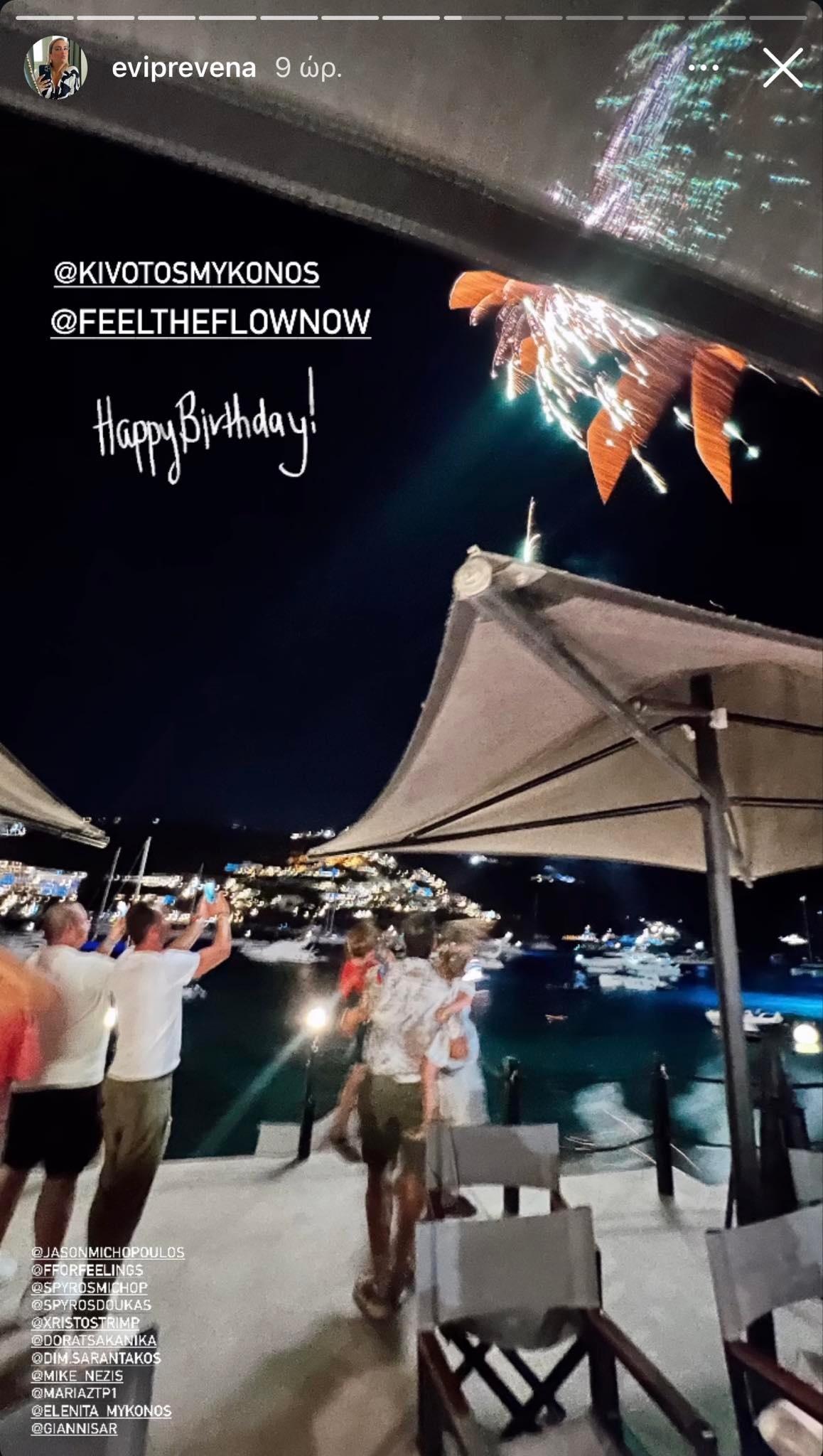 Η φίλη του επιχειρηματία, Εύη Πρεβενά δημοσίευσε στιγμιότυπα από το πάρτι.