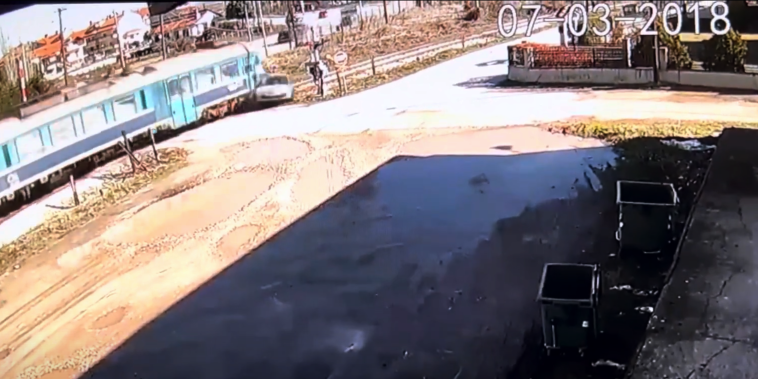 Ο άτυχος άντρας περνάει την διάβαση … χωρίς να ενημερωθεί απο κανέναν. Χωρίς σήμανση. Χωρίς μπάρες. Και μπαίνει στην διάβαση του θανάτου του.