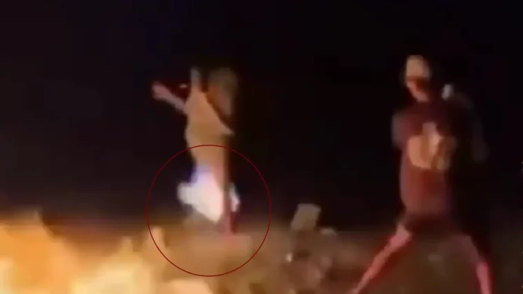 Όσο ο νεαρός καιγόταν, οι φίλοι του γελούσαν και τον βιντεοσκοπούσαν.