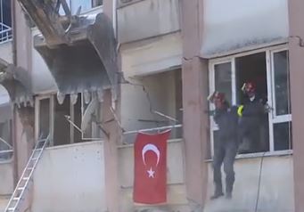 Βίντεο που αναρτήθηκε στο twitter, δείχνει διασώστες στην Αντιόχεια να έχουν μπει σε κτίριο για να ψάξουν εγκλωβισμένους.